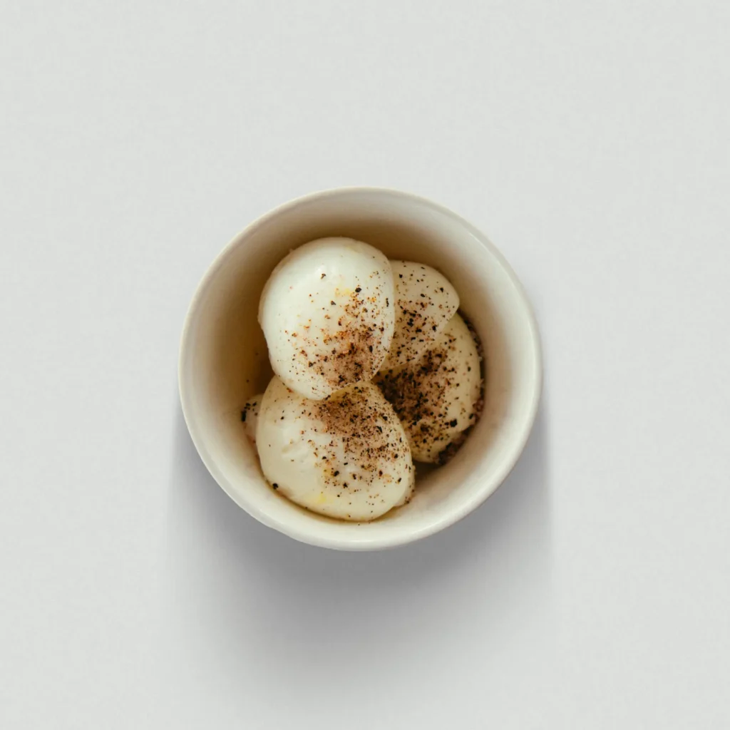1. Peel the shell while soaking the boiled egg in water and separate the yolk from the white. Season the whites of the eggs with salt and pepper.