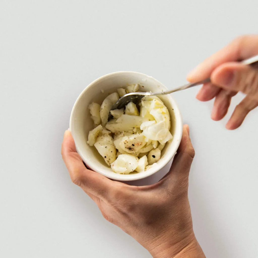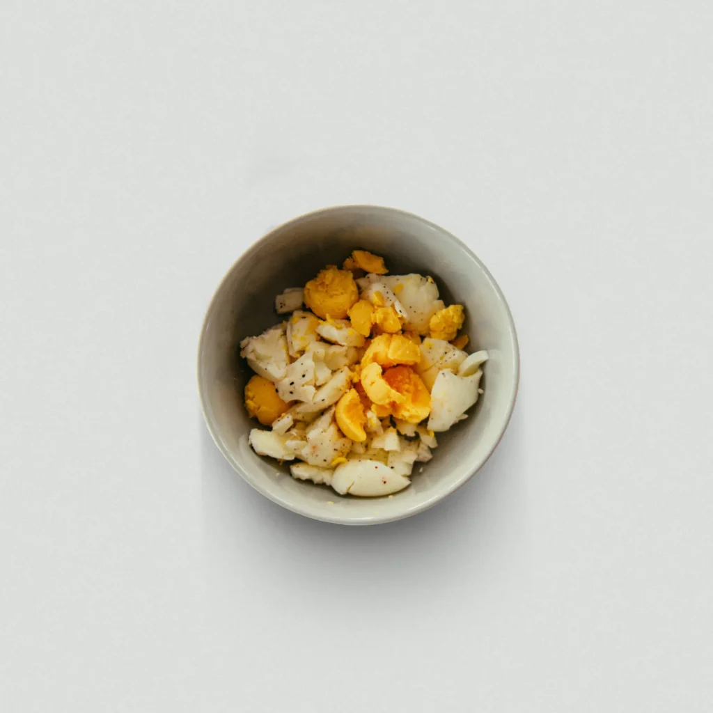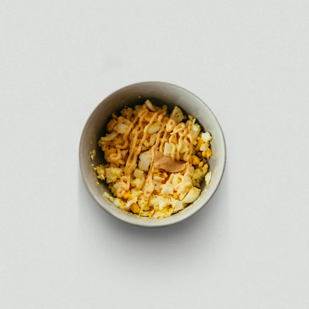 1. Dress with mayonnaise and mustard and mix roughly.