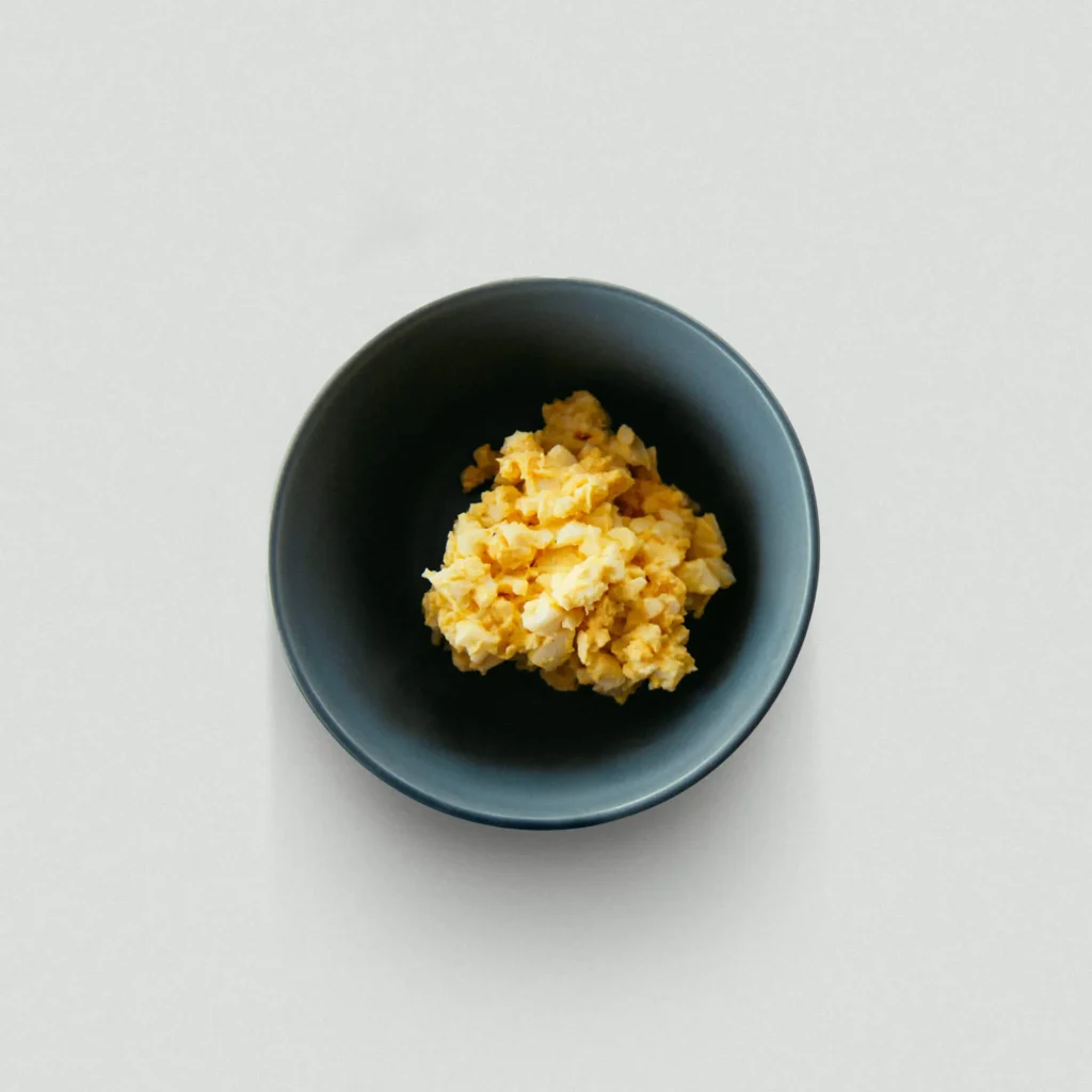 To take advantage of the flavor of the eggs themselves, use mayonnaise somewhat sparingly; 2 teaspoons per egg is a good rule of thumb. You can add more if you like, but no more than about 1 tablespoon. Add mayonnaise a little at a time as you taste.