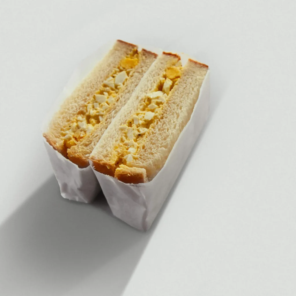 The egg sandwich is one of the most popular sandwiches in Japan. At the heart of a great egg sandwich is a creamy egg filling and essential to this are soft boiled, not hard boiled eggs! The creamy yolks practically makes its own mayonnaise sauce and the soft-set egg whites almost melt in your mouth.